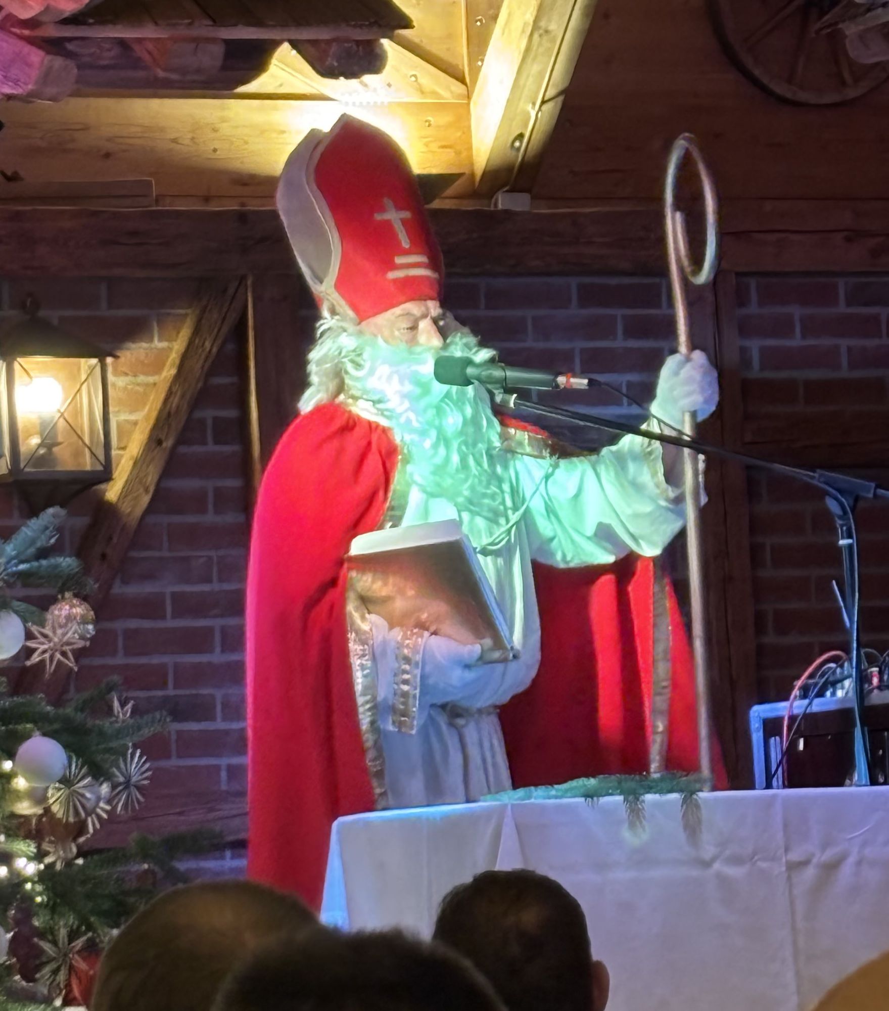 Ob alt oder jung, arm oder reich - es war ein besinnliches, friedliches Beisammensein. Der Nikolaus schaute vorbei, musikalisch umrahmten die "Filsers" das Programm. Als besonderer Gast trug Jürgen Kirner von den "Brettl-Spitzen" (Bayerisches Fernsehen) eine humorvolle Weihnachtsgeschichte vor. Ein reich geschmückter Christbaum, gesponsort von der Gärtnerei Gilg, wurde versteigert. Zudem spendete die Firma Exquisa Geschenktüten mit Milchprodukten und die Firma Müller übernahm 100 Essen für bedürftige Teilnehmende.